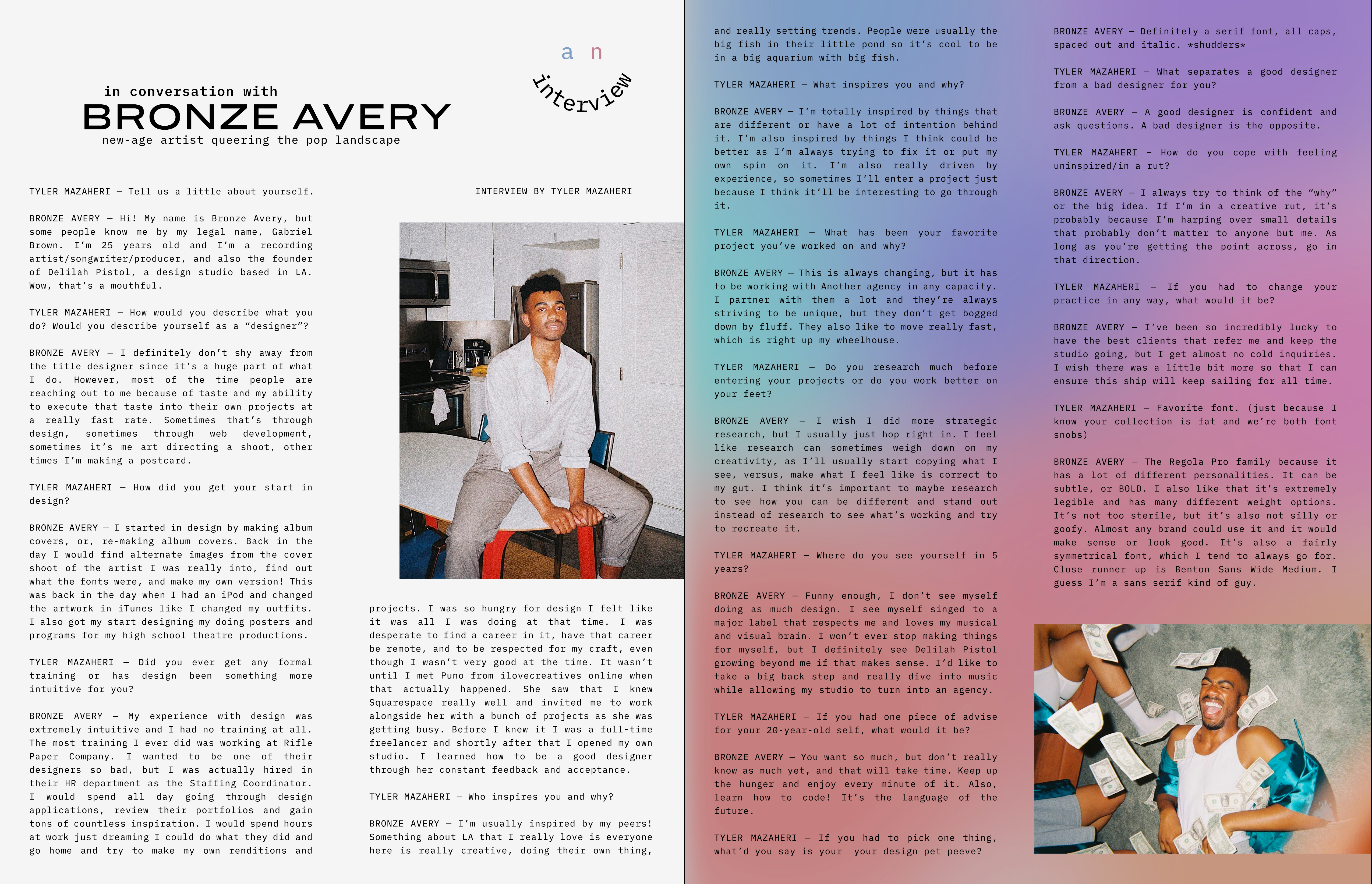 Tyler (he/they) is a visual artist whose interdisciplinary practice emphasizes in fashion-oriented photography and design. Born and raised in the American midwest, their unique perspective is shaped by days spent in the Arkansas heat reading through their favorite fashion publications. With a do-it-yourself mentality, Tyler stands in as the model, photographer, and designer to their own self-directed vignettes.